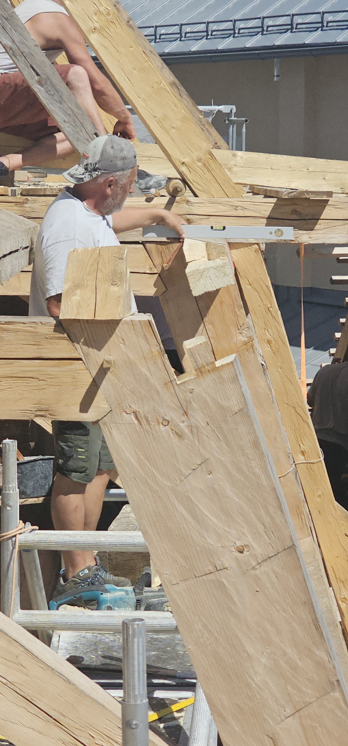 Tento postup sa opakuje pri desiatkach ďalších spojov, až postupne vzniká celé puzzle konštrukcie krovu. Každý spoj je malý ale dôležitý kúsok skladačky, ktorý má rozhodujúci vplyv na stabilitu a bezpečnosť strechy.