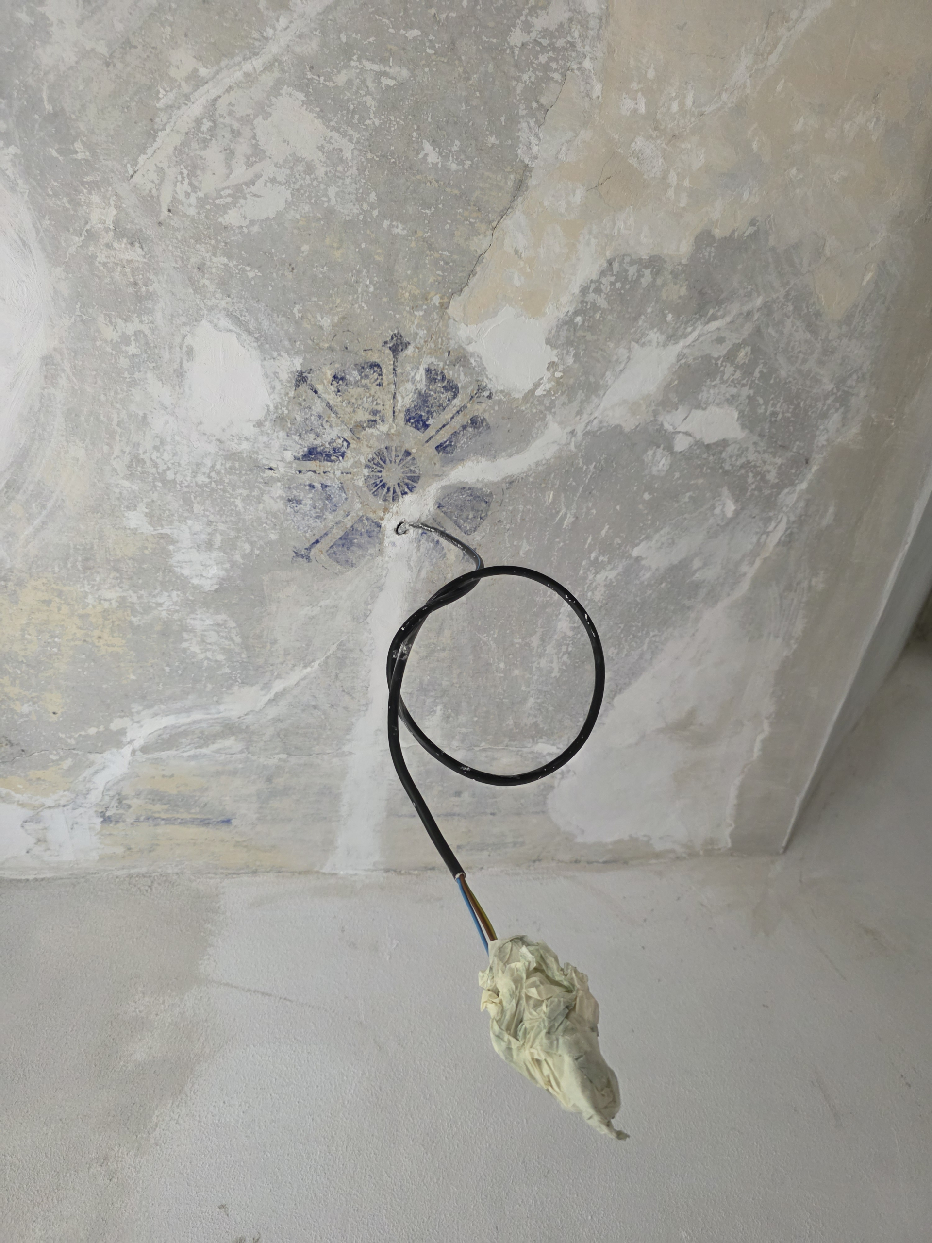 V prvej etape prieskumu sme sa sústredili na rozsah zachovania a charakter výmaľby. Maľba mala jednoduchý, striedmy koncept založený na monochromatickom rámovaní okrajov jednotlivých plôch v kombinácii s jemným linkovaním. Centrálne geometricko-florálne ornamenty roziet boli realizované pomocou šablón, čo bolo pre dané obdobie prelomy 19. a 20. storočia typickým riešením. Farebná škála zachovaných fragmentov prirodzene korešpondovala s farebnosťou ostatných povrchov, ktoré sa v tom čase obnovovali. Výmaľba navyše výborne ladila s novou dlažbou osádzanou na podestách schodiska a spoluvytvárala harmonický celok.