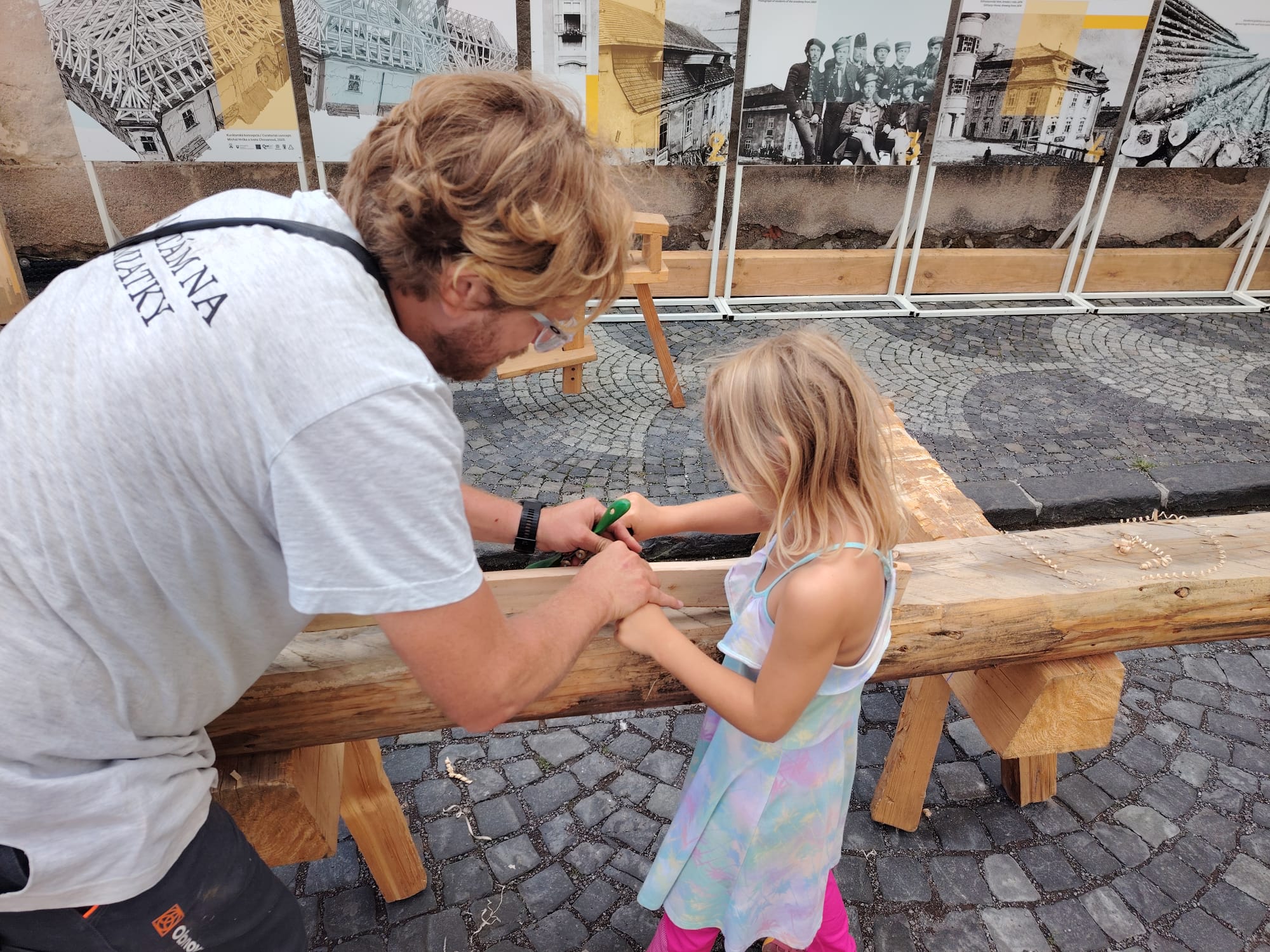Návštevníci mohli na vlastné oči vidieť dynamické ukážky tradičných tesárskych techník, od ručného kresania trámov až po hobľovanie či numerické značenie pomocou originálnych razníc. Mnohí si remeslo vyskúšali priamo na mieste – deti i dospelí tak mali možnosť interagovať s tradičným remeslom.