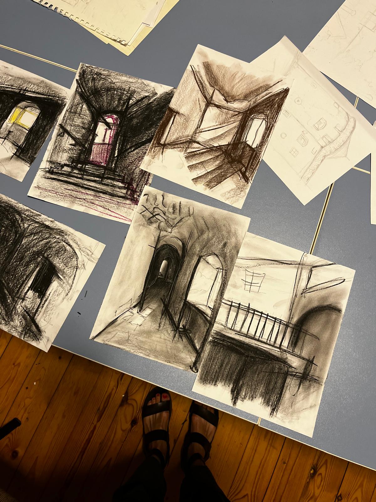 Štiavnické uličky, krajina, aj genius loci mesta boli pre mladých architektov výzvou, no Mikovíniho dom ich doslova pohltil. V autentických interiéroch, kde sa kedysi vyučovala teória baníctva a viedli odborné diskusie, dnes vznikali kresby, skice a štúdie – spontánne a bezprostredné výtvarné záznamy priestoru.