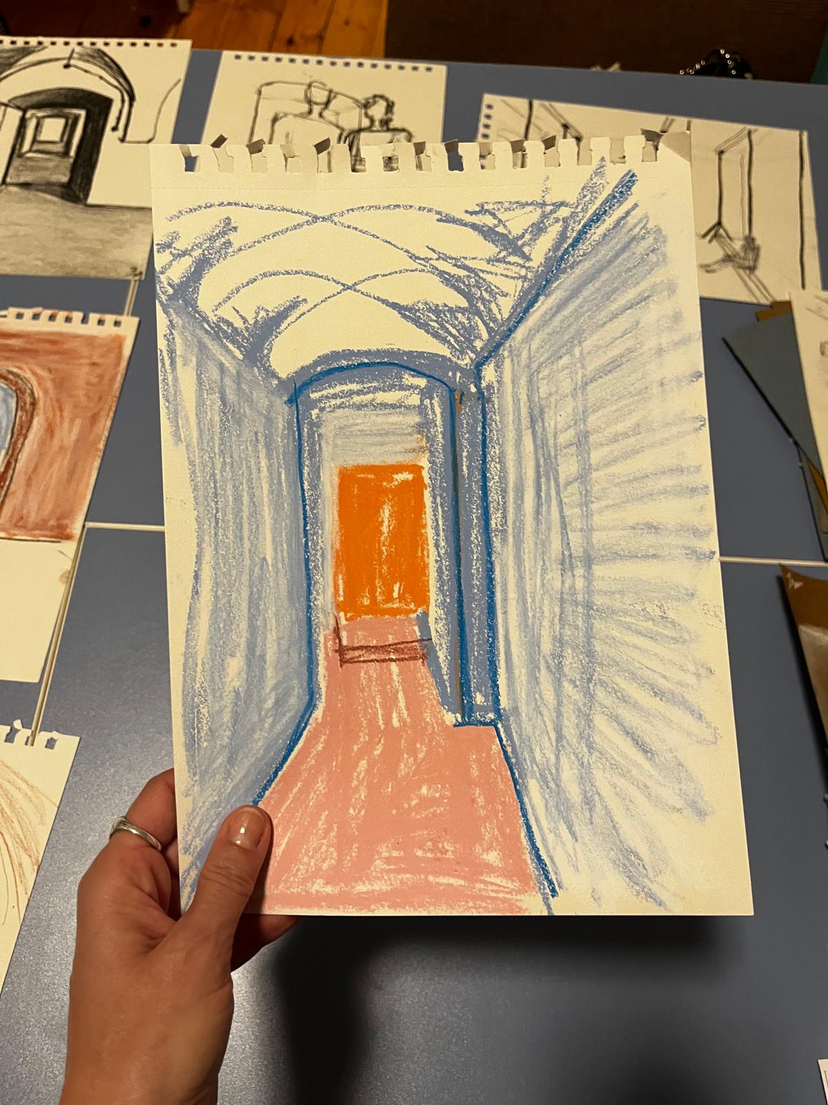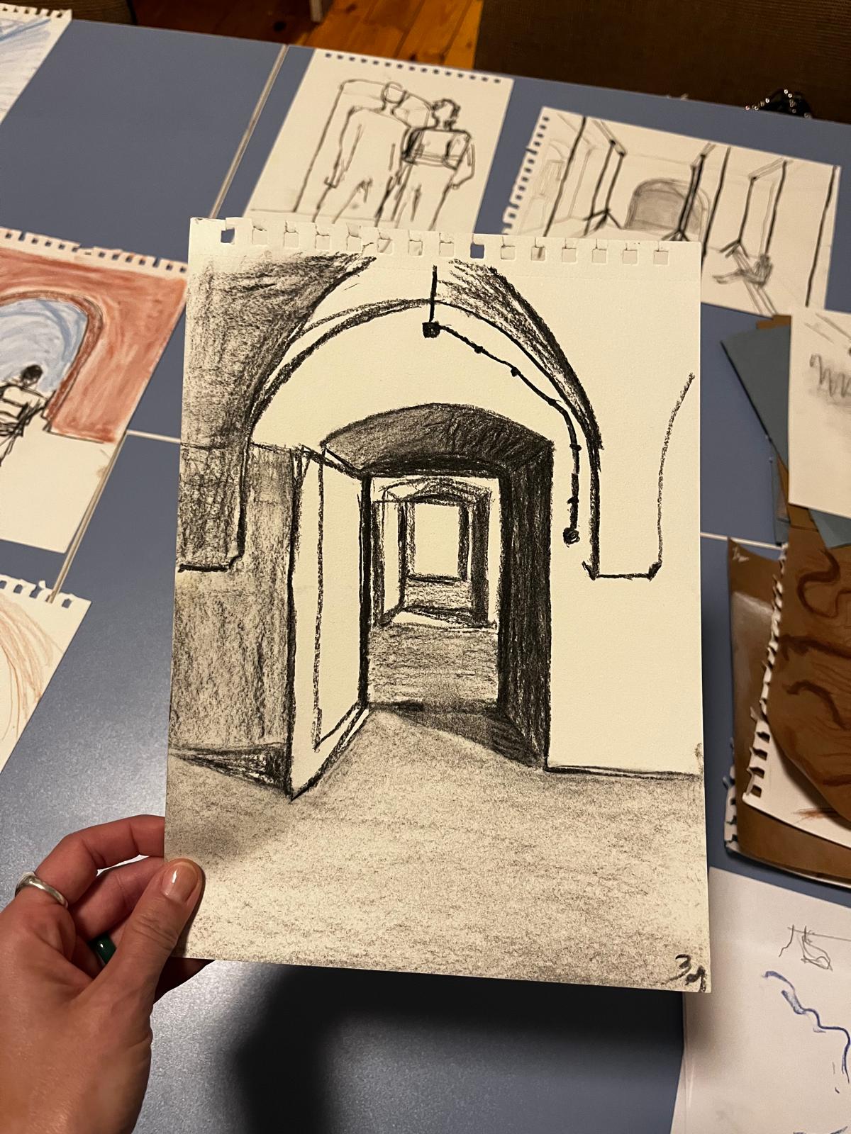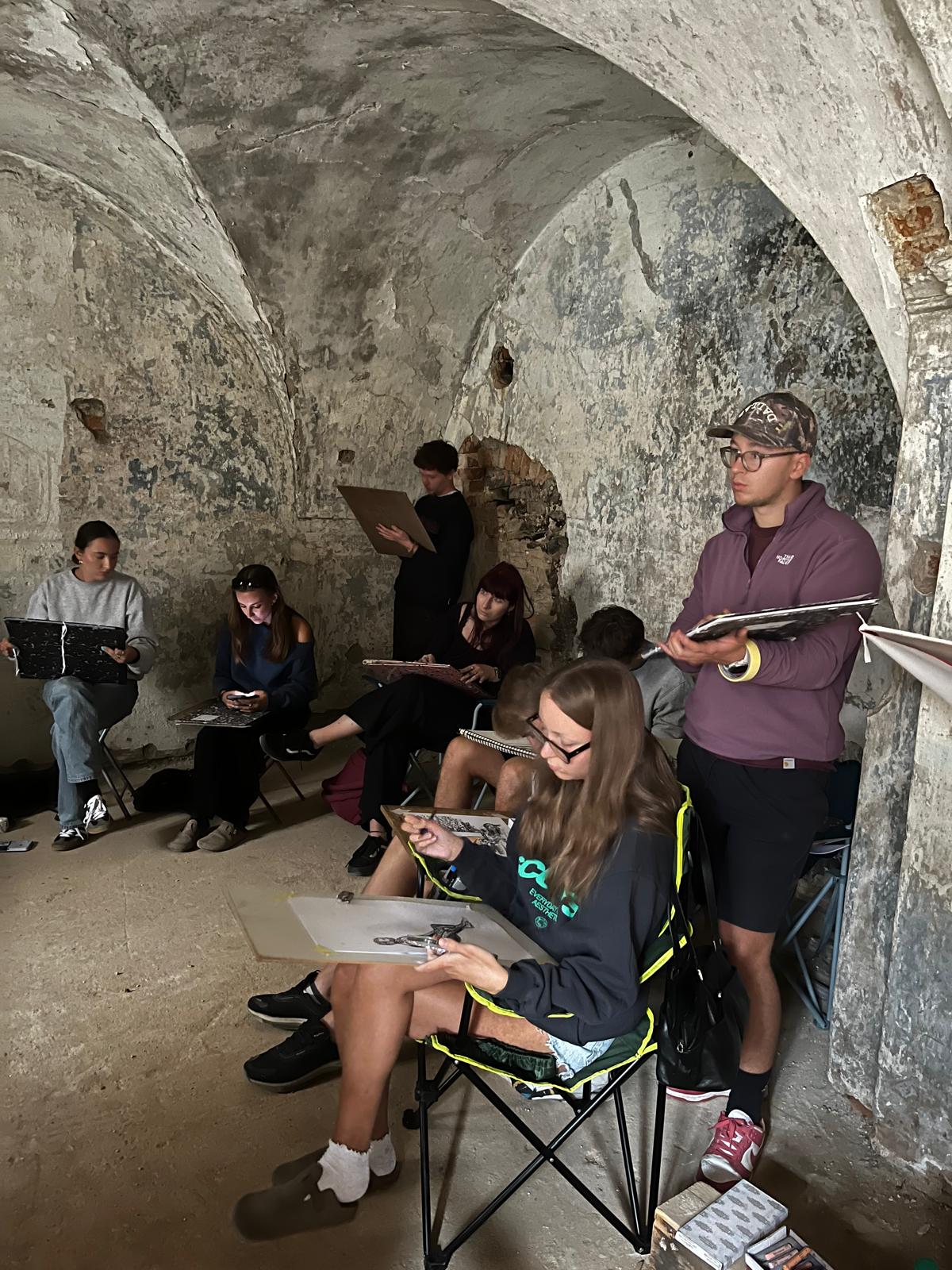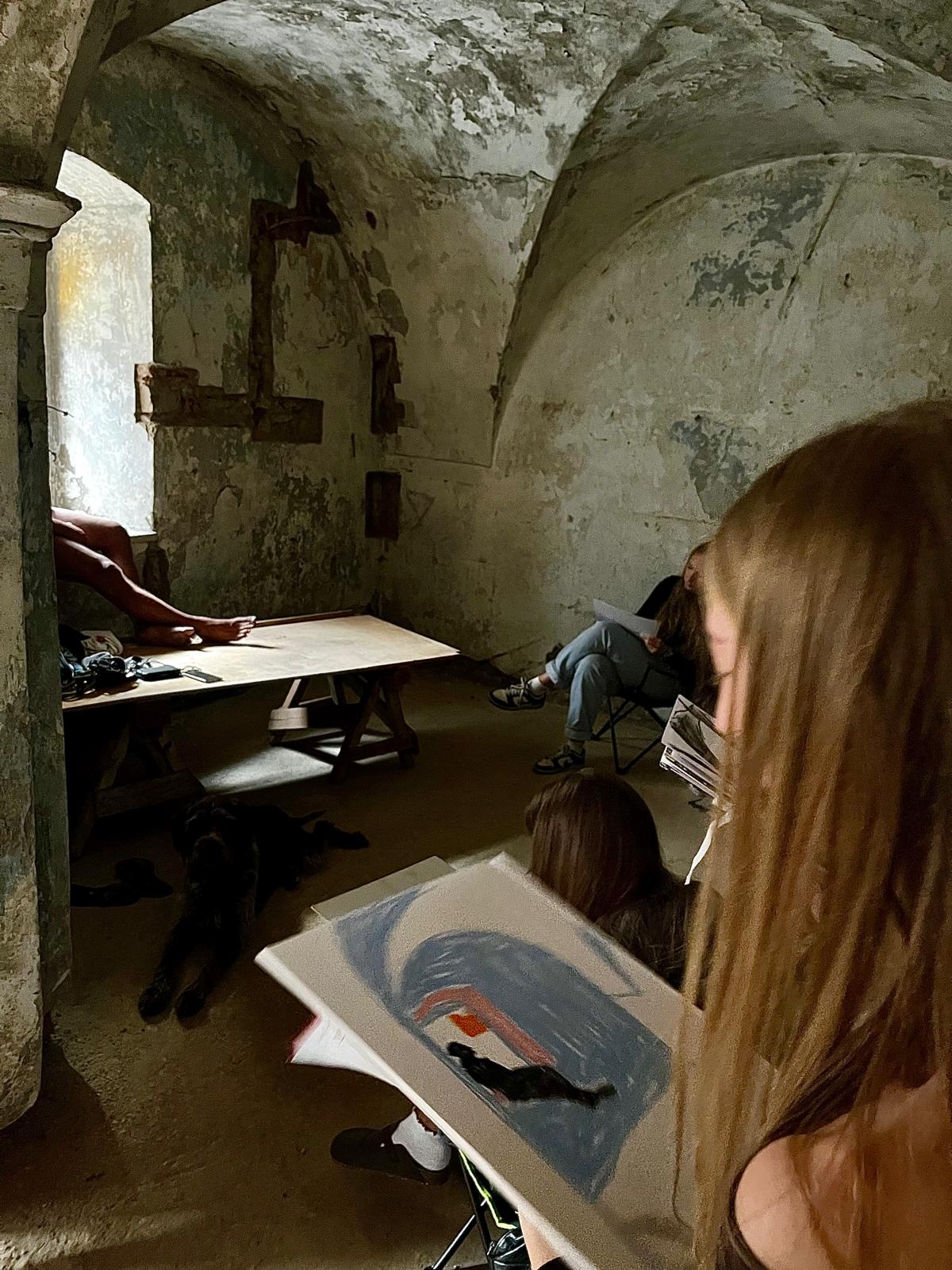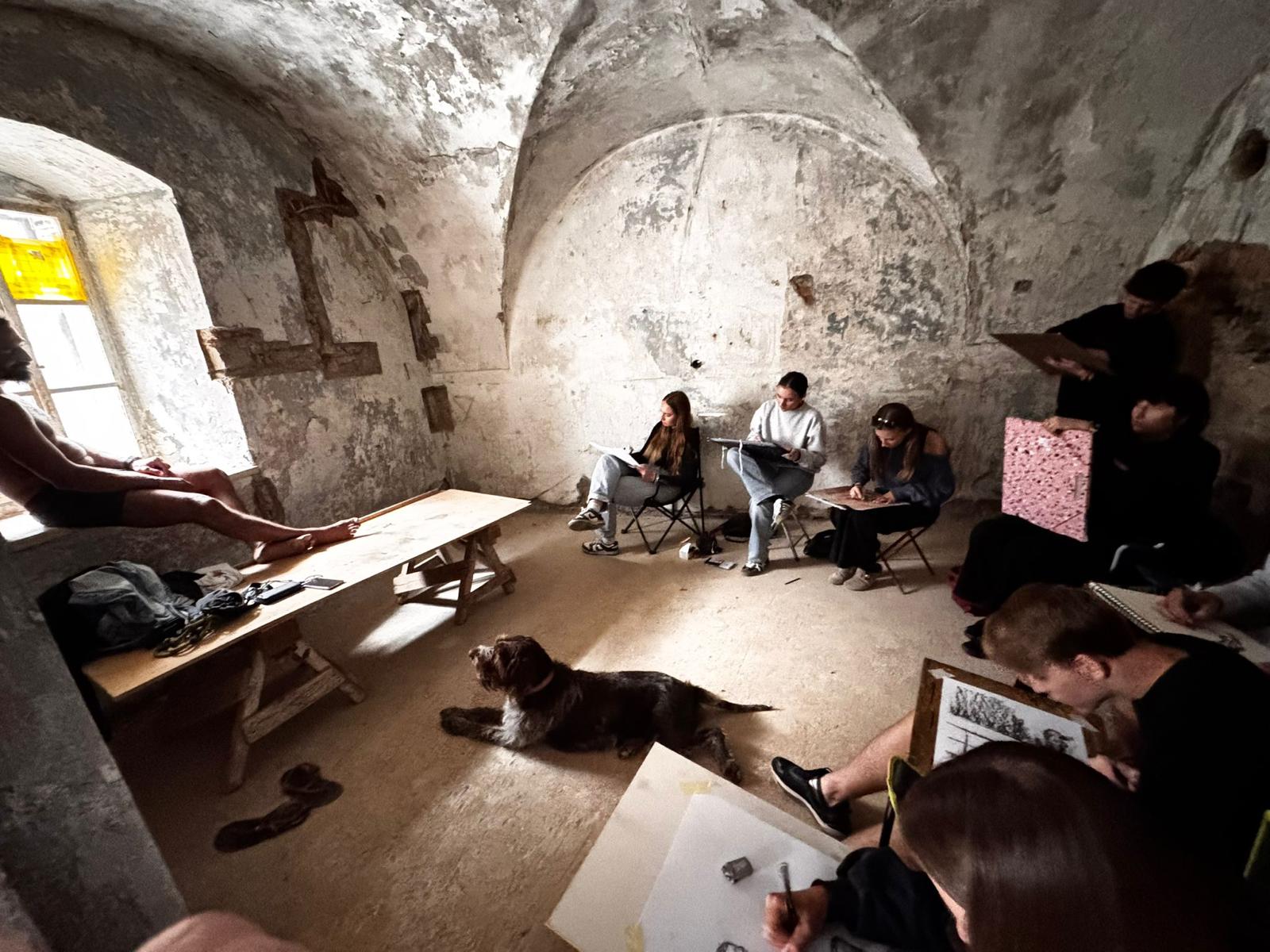 Pre mnohých študentov to bola prvá osobná skúsenosť s pôvodnými historickými interiérmi. Ticho starých zaklenutých miestností, jemné svetlo prenikajúce cez hrubé múry, textúra materiálov, stopy času – všetko to vytváralo silný zážitok, ktorý sa prirodzene preniesol do ich výtvarného prejavu.