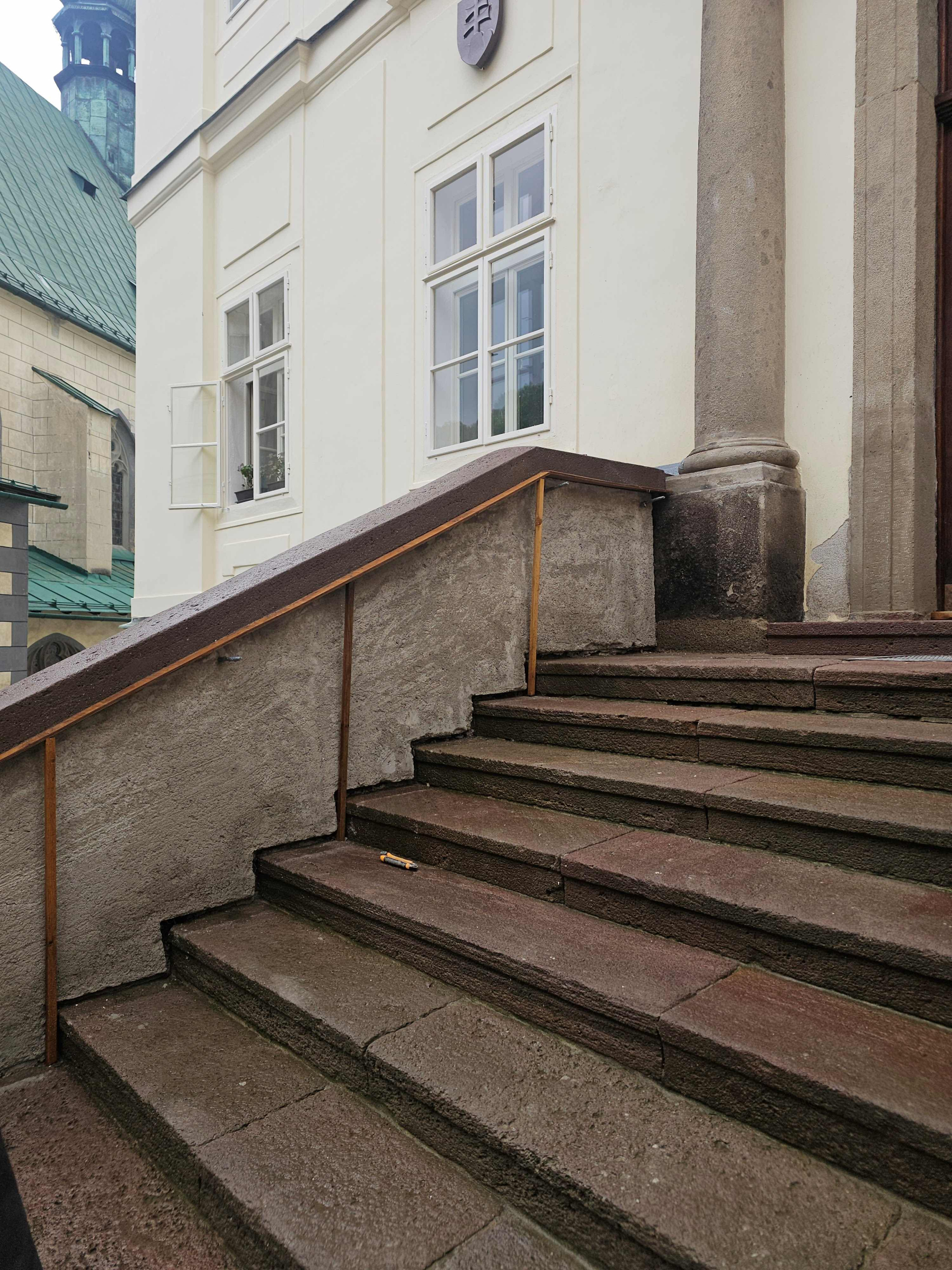 Naším cieľom je, aby sanačné a iné úpravy schodiska boli sofistikovane funkčné a zároveň nenápadné. Takto zachováme charakter a architektonický výraz tohto dôležitého prvku hlavného vstupu do historickej banskoštiavnickej radnice.
