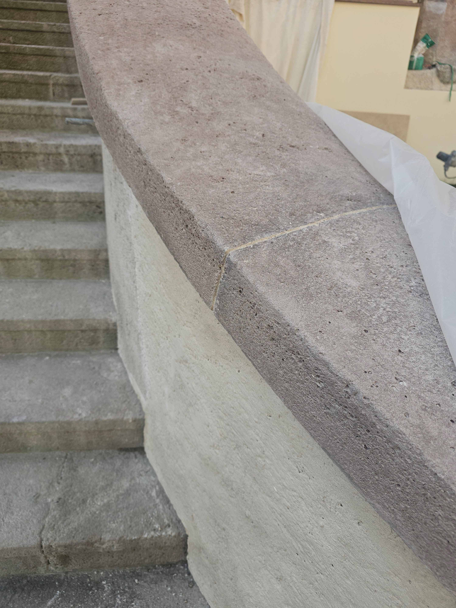 Pri koncipovaní návrhu obnovy schodiska sme sa sústredili na maximálne zachovanie jeho originálnej podstaty, na odstránenie príčin porúch a na elimináciu ich dopadov. Navrhli sme dôsledné odvetranie a hydroizoláciu bočných murív. Omietkové povrchy obnovujeme v pôvodnom charaktere štruktúry omietok. Dôležitým momentom je tvarové dotvorenie krycej hlavy parapetov schodiska tak, aby umožňovala dostatočnú ochranu konštrukčných častí.