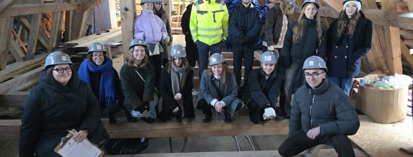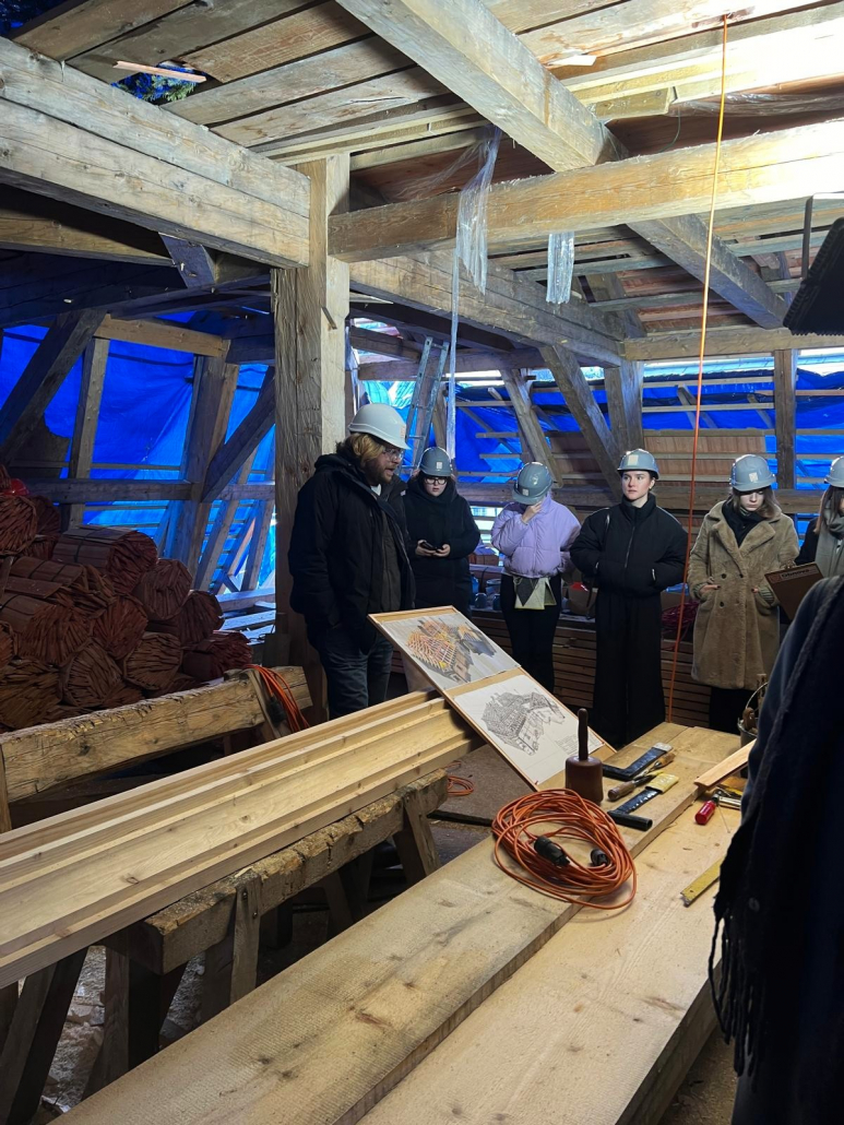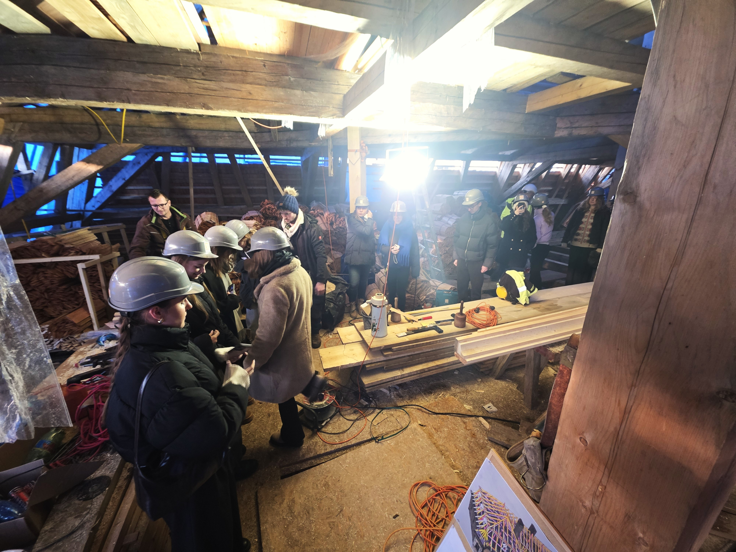 Účastníci získali priamy vhľad do zámeru aj priebehu rekonštrukcie unikátneho ručne kresaného barokového krovu, ktorý nahrádza konštrukciu zničenú požiarom v roku 2023. Pre mnohých to bolo prvé stretnutie s „tesárčinou a šindliarčinou“ zblízka. Najväčšiu pozornosť pútali špecifiká historického konštrukčného manzardového riešenia krovu a precízne tesárske spoje, ktoré dokumentujú vysokú úroveň remeselného majstrovstva realizačného tímu.