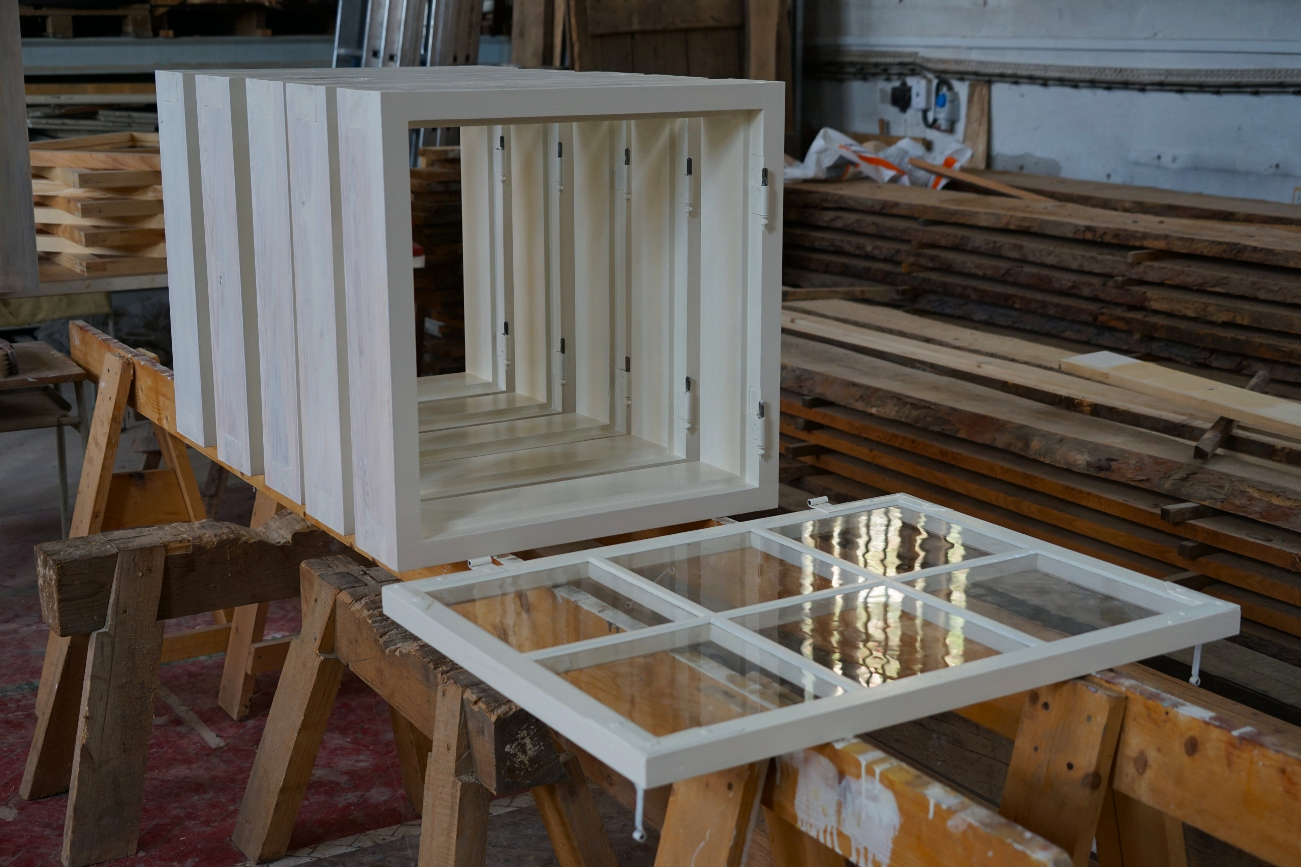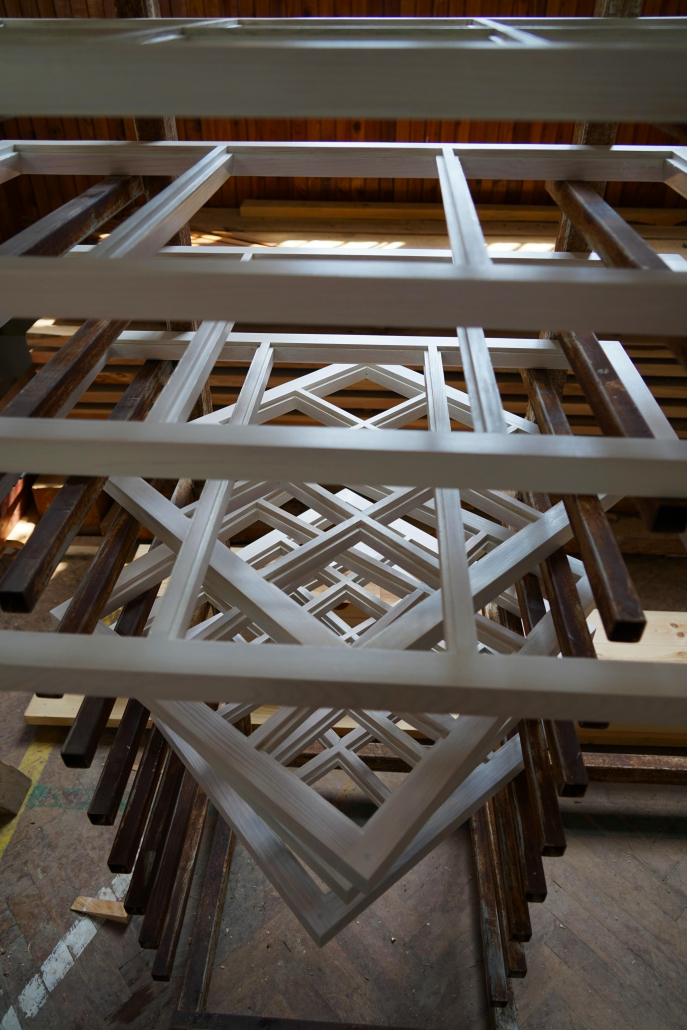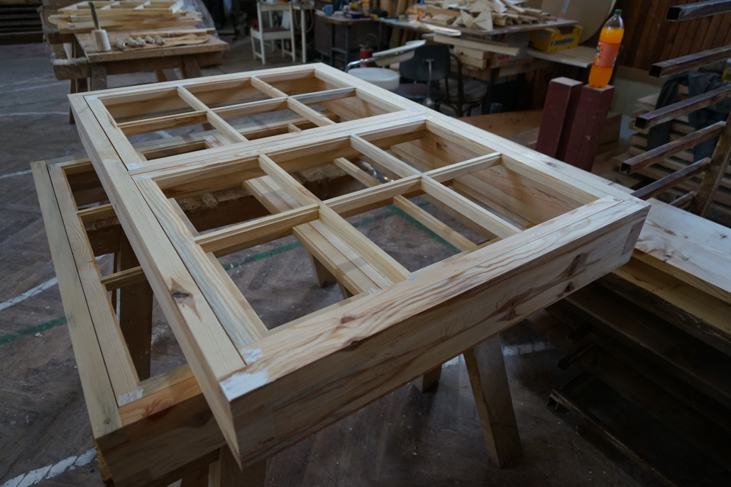 Výroba pevných rámov a subtílnych okenných krídel bola radosťou pre celý tím našich stolárov. Najväčšiu mieru sústredenia si vyžadovali čisté a presné spoje. Kovové prvky vznikali v úzkej spolupráci so skúseným zámočníkom.