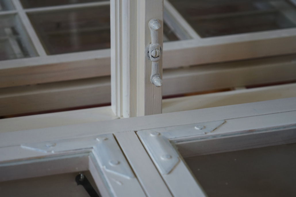 Okná sme ošetrili osvedčeným viacvrstvovým náterom z ľanovej farby zo Švédska a obnovili ich nadčasovú bielu farebnosť. Na zasklenie sme použili liate (líhané) sklo, ktorého jemne zvlnený povrch dodal celku autentický výraz.
