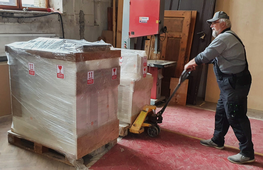 Samostatnou kapitolou bola príprava okien na transport do Nórska. Vyrobili sme prepravné boxy a zabezpečili ich výrazným označením. Cesta prebehla bez komplikácií a okná prirodzene zapadli do historickej stavby. Fotodokumentácia približuje tento atypický projekt realizovaný v roku 2020.