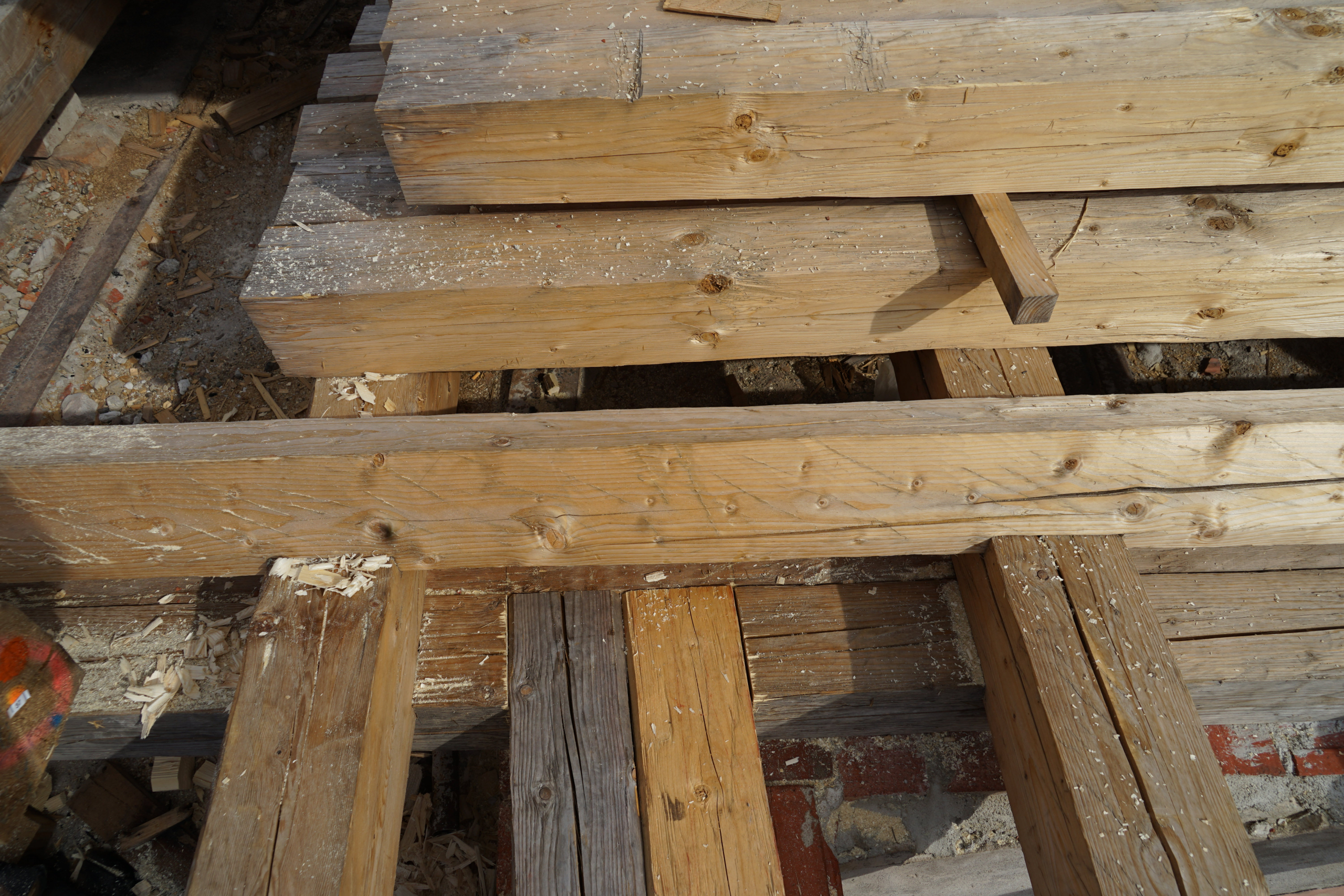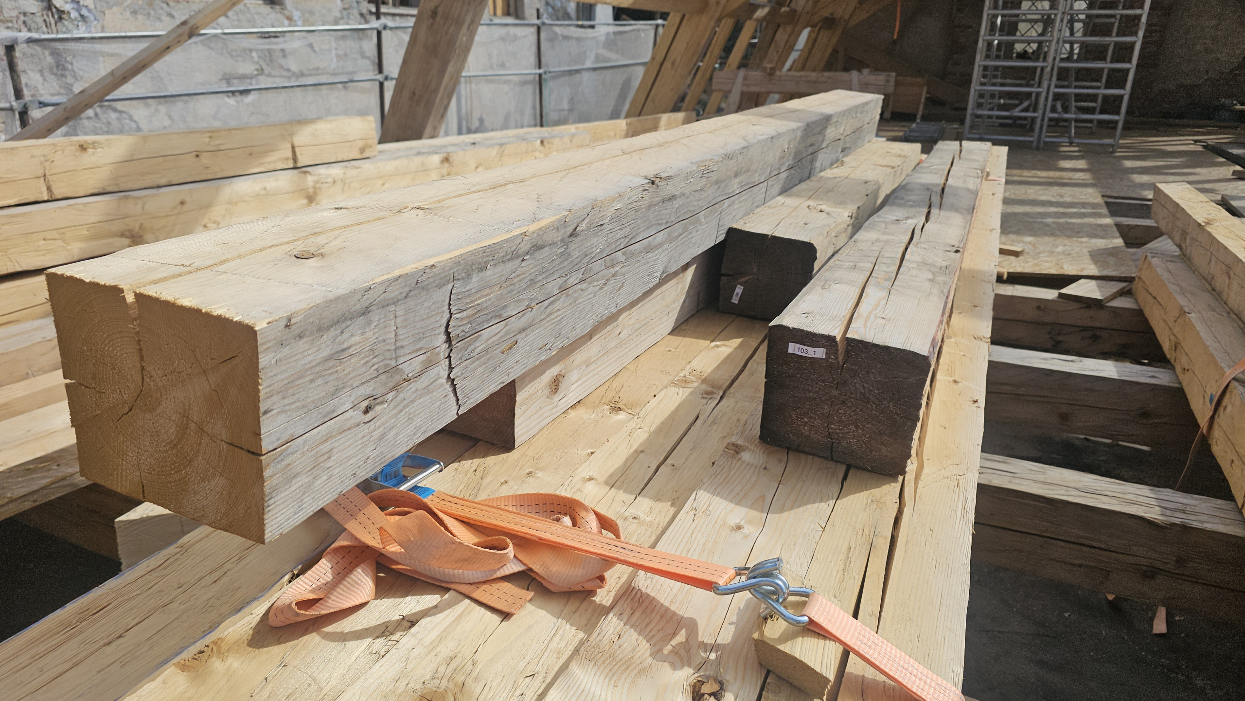 Počas rekonštrukcie krovu máme možnosť sledovať jedinečný prírodný experiment. Čerstvo kresané trámy zo zimnej jedle a smreku menia svoju farbu takmer zo dňa na deň. Kým na začiatku žiaria svetlým odtieňom, pôsobením slnka a vzduchu sa ich povrch postupne sfarbuje do sivých tónov. Smrek sa navyše dokáže na určitý čas prefarbiť do jemne ružovkastých či okrových odtieňov – ako keby drevo samo od seba vytváralo farebnú paletu.